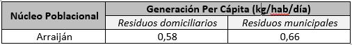 Tabla 1. Generación per cápita de residuos domiciliarios y municipales