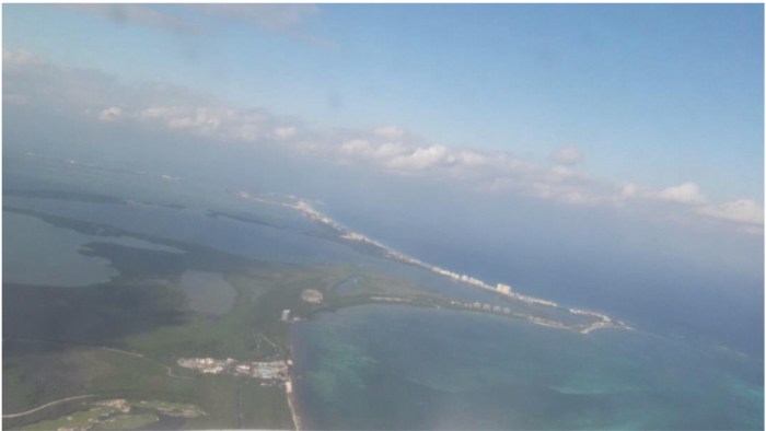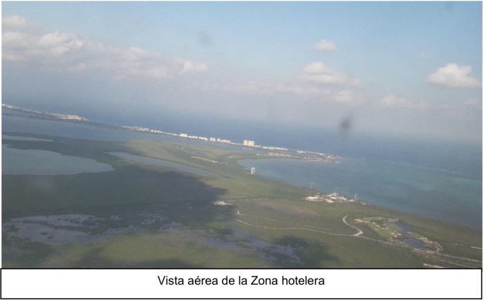 El área de la zona hotelera de Cancún en 1970 era un sistema lagunar salobre, presencia de arrecifes coralinos, y ciénagas como la vemos en foto inferior. Ubicada en la península de Yucatán, colindante con el Mar Caribe y ubicada en la Zona de Convergencia Intertropical.