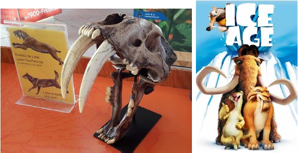 Al salir de las instalaciones internas, se llega a una galería externa donde se encuentran murales con textos descriptivos de diferentes aspectos del museo, donde destaca el cráneo de un “dientes de sable”, lo cual de manera automática me recordó a Diego, personaje de la película “La era del hielo”. La sensación es totalmente diferente cuando se observan los detalles de los restos de un ser que estando vivo debió ser espectacular.