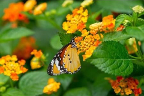 Existe un jardín botánico diseñado por la arquitecta paisajista Edwina von Gal quien caracteriza sus diseños con especies nativas. Una de esas especies es la “lantana”, cuyas flores atraen las mariposas que se encuentran alegrando el ambiente externo del Biomuseo (figura 10).