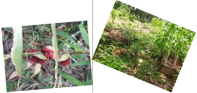 Encontramos además caña de azúcar, maíz, plantas medicinales, vino de palma, culantro, cebollas, variedad de plantas frutales, algunos trasplantados y otros germinados.