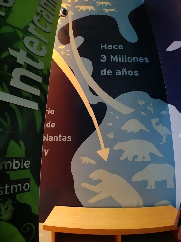 Pasado toda la geología que se expuso en la galería anterior, se nos presenta cómo, con el surgimiento, Panamá pasó a ser un lugar de tránsito para animales que migraban del sur al norte y viceversa. Ya en este punto de la visita lo que verdaderamente me llamó la atención fue donde se nos indicaba que hace miles de años caminaba por este territorio un oso perezoso que pudo llegar a medir hasta 3 metros.