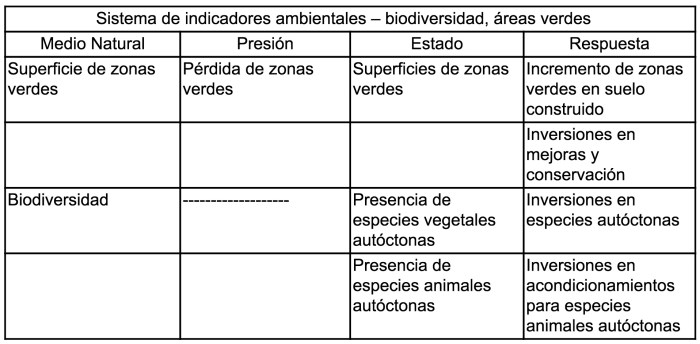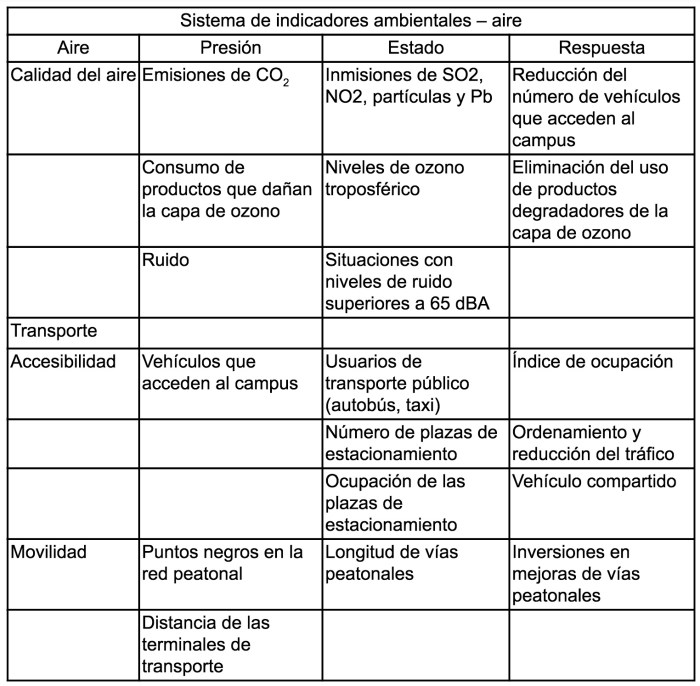9. Proponga, según se aplique a cada área, los elementos para un Sistema de Indicadores Ambientales. La estructura deberá atender los siguientes aspectos: