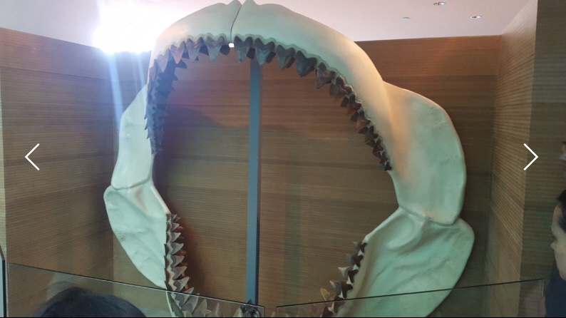 Cuando Panamá emergió, dos océanos muy diferentes se formaron, cambiando la vida en toda la Tierra. Dos acuarios semicilíndricos de gran altura mostrarán cómo el Pacífico y el Caribe evolucionaron al quedar separados por la creación del istmo. “Océanos Divididos” fue una exhibición que nos ilustró sobre los cambios a las áreas marinas que resultaron de que el istmo de Panamá emergiera, formando 2 océanos diferentes, afectando la vida marina en todo el planeta. Observamos réplicas de fósiles de animales acuáticos que hace millones de años habitaban las costas de nuestro istmo. Y lo más impresionante de esta sala a mi concepto, fue ver los restos a escala real de un Megalodón, que fue el tiburón más grande del mundo, y del cual se han encontrado restos en nuestro istmo.