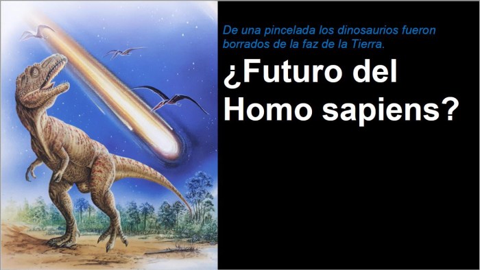 De una pincelada los dinosaurios fueron borrados de la faz de la Tierra. ¿Futuro del Homo sapiens? Publicado el 7 noviembre, 2018 por Marilyn Diéguez Pinto Comparte esto: Haz clic para compartir en X (Se abre en una ventana nueva) X Haz clic para compartir en Facebook (Se abre en una ventana nueva) Facebook Me gusta Cargando...