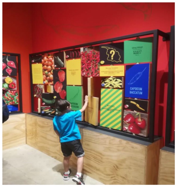 En la exhibición se muestran fotos y recetas de platillos de todo el mundo en los que diferentes especies del género Capsicum (familia Solanaceae) son el ingrediente principal. Se pueden adquirir semillas de diferentes especies de ajíes que es posible sembrar en casa.