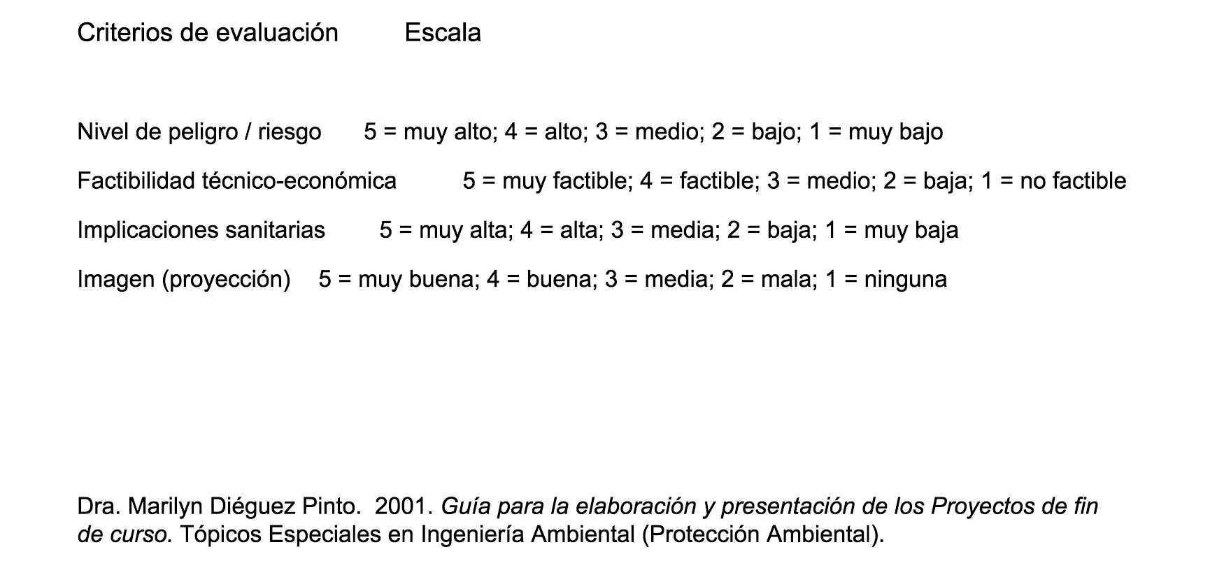 Diéguez Pinto, Marilyn. 2000. Guías de Laboratorio. Curso de Protección Ambiental. Escuela de Biología. Facultad de Ciencias Naturales, Exactas y Tecnología. Universidad de Panamá.