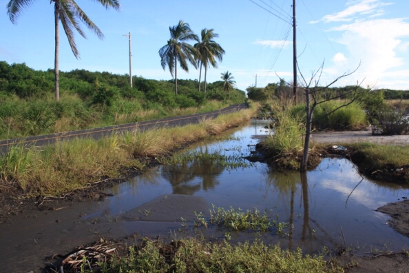 - Hace como dos años un habitante del sitio indicó que esperaría sentado a que uno de los edificios del sitio se lo llevara el mar. A través de sus años de vida ha observado cómo el mar se ha llevado infinidad de propiedades. En efecto, averiguando, el edificio cuenta con bombas para sacar el agua de mar que entra durante los períodos de marea alta.