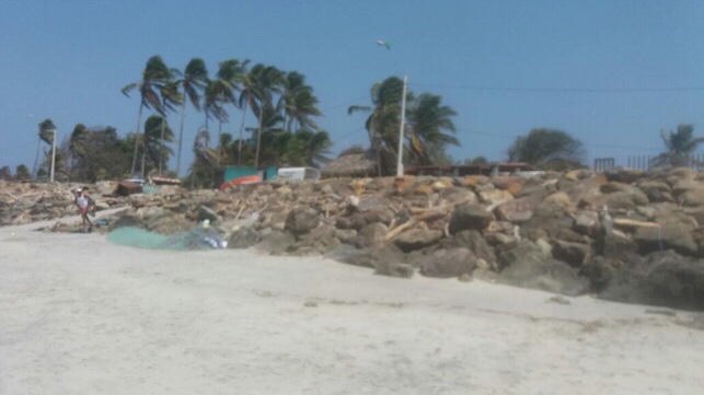 - Los negocios de la localidad están invirtiendo dinero y esfuerzos por evitar que las aguas sigan tomando más territorios, pero están utilizando métodos poco efectivos como la colocación de grandes rocas que finalmente son sepultadas por la arena o removidas por el mar.