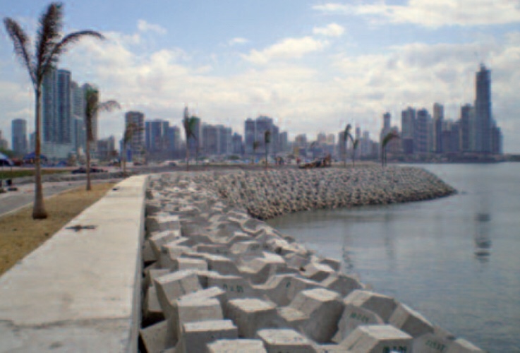 - Un complejo vacacional, con un muro recto -con un ángulo mayor de 90° con la base-, construido como muro de contención o rompeolas. Quizá, como muro impermeable para que soporte la fuerza de la ola y evite la entrada del agua cuando hay aumento de nivel de marea.