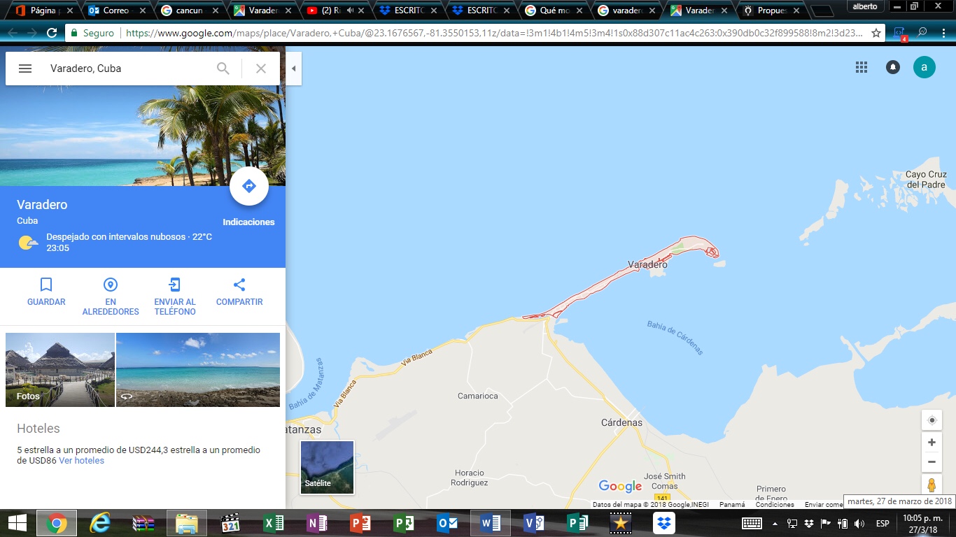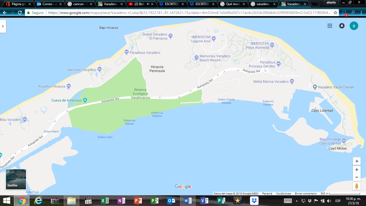 Figura 11. Vista aérea de la Zona hotelera y el sistema de arrecifes que rodean la zona costera.