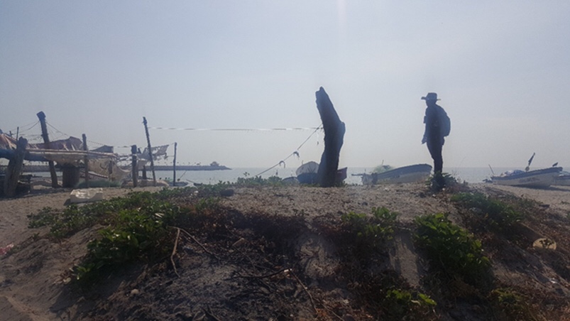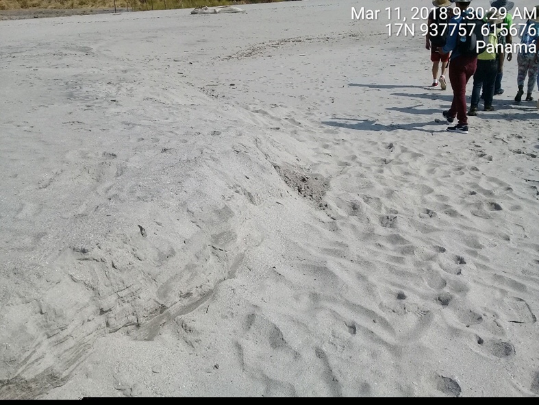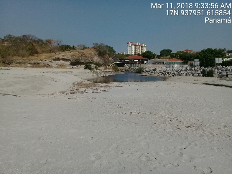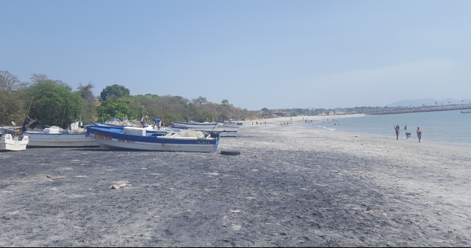 El área visitada, durante la gira académica del 24 de marzo, es conocida por los lugareños como punto de salida para la pesca (embarcadero), y por personas fuera del lugar, como balneario y lugar de esparcimiento. Al llegar, fuimos recibidos por personal del SINAPROC, que se encontraba en el lugar como despliegue de tarea conjunta para mantener la seguridad de los ciudadanos que utilizan esta playa como balneario.
