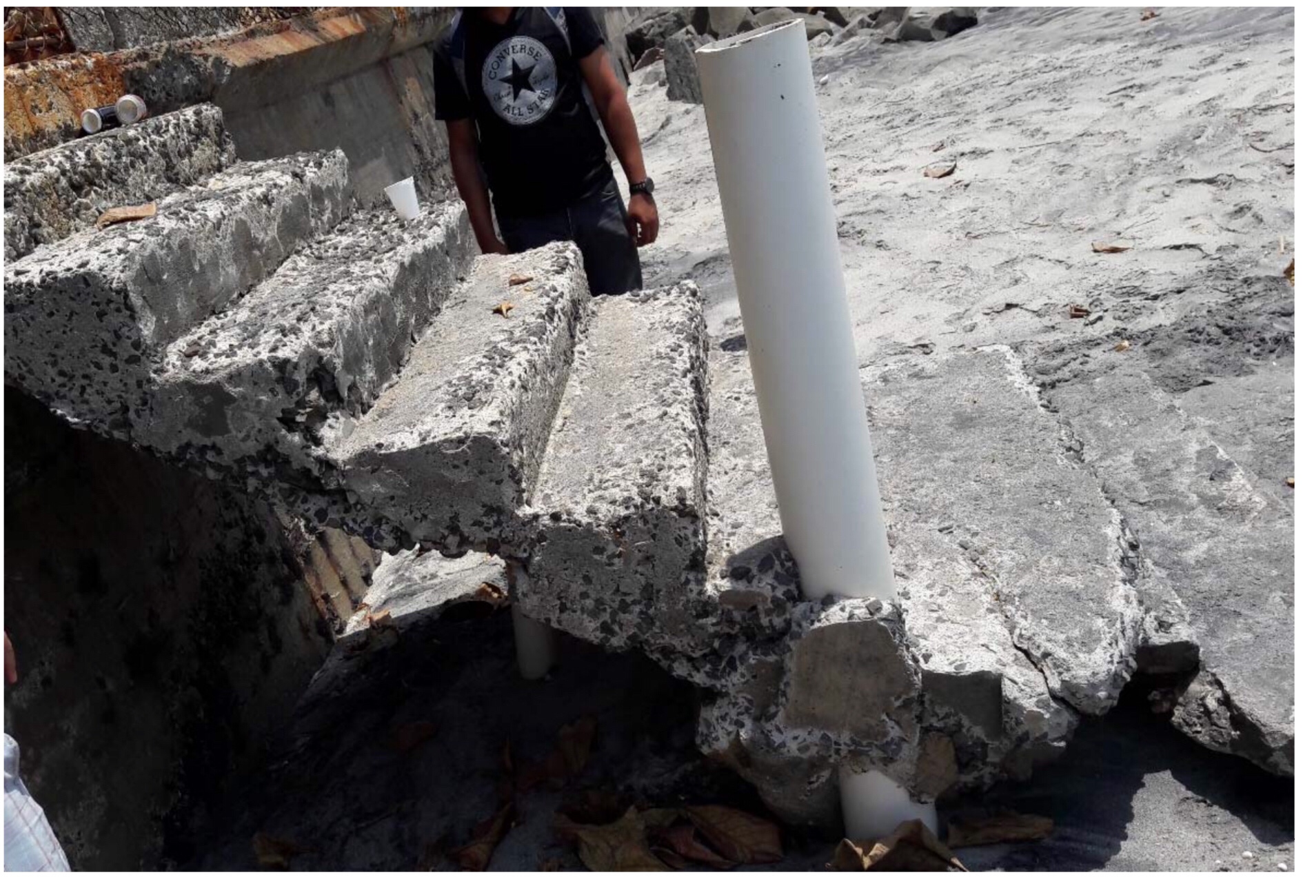- El muro y las escaleras sin base podrían ser derribadas por la marejada.