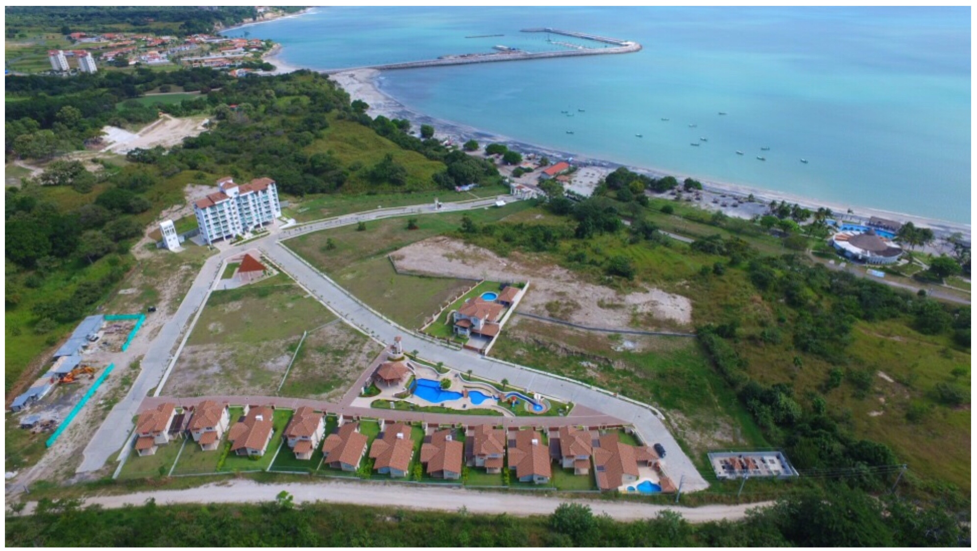 - Un complejo vacacional, con un muro recto -con un ángulo mayor de 90° con la base-, construido como muro de contención o rompeolas. Quizá, como muro impermeable para que soporte la fuerza de la ola y evite la entrada del agua cuando hay aumento de nivel de marea.