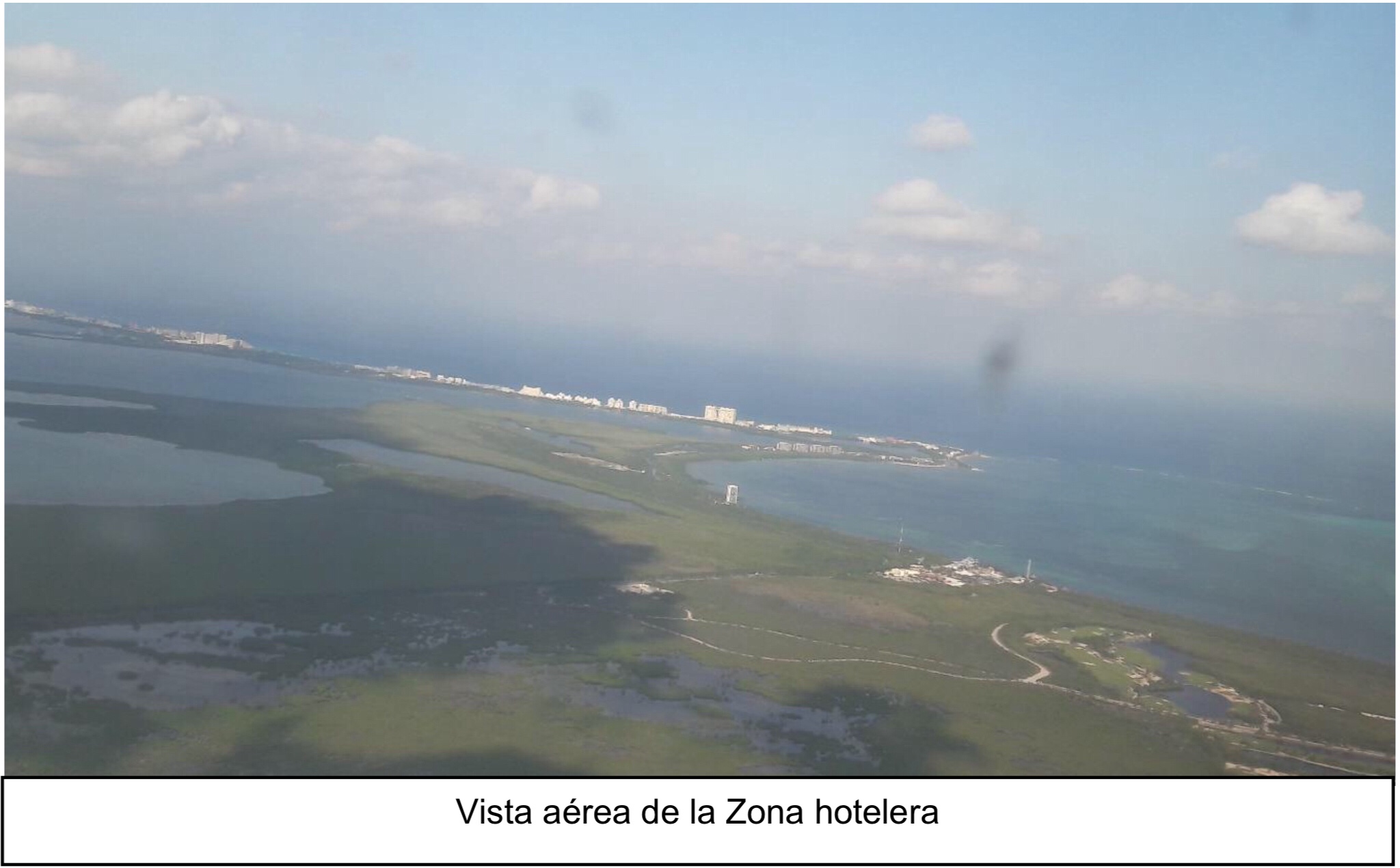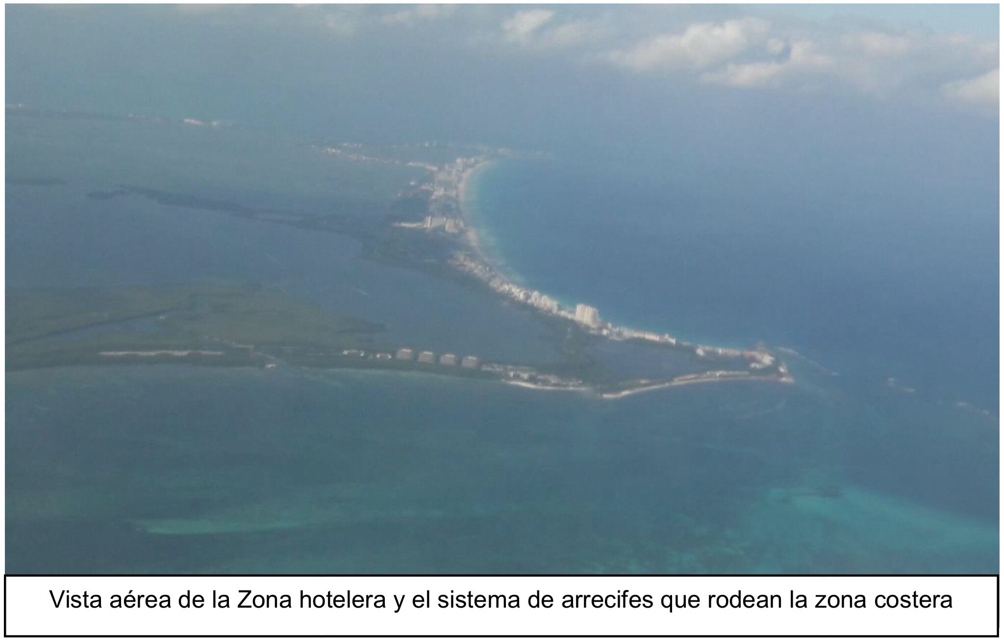 Figura 11. Vista aérea de la Zona hotelera y el sistema de arrecifes que rodean la zona costera.