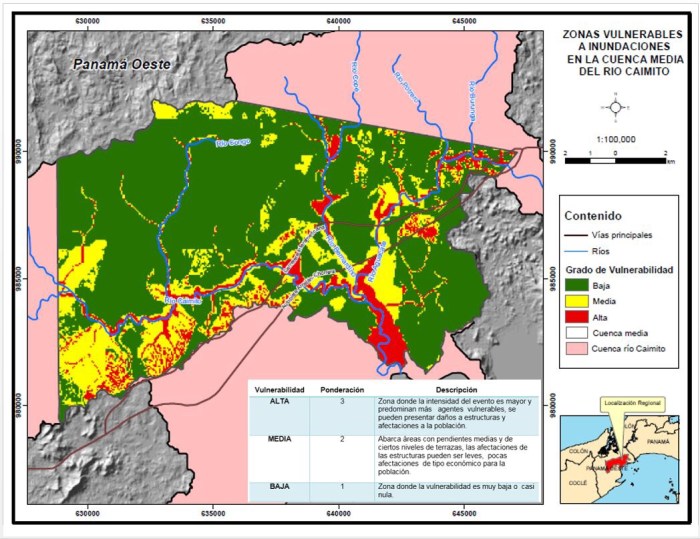 Figura 1. Zonas vulnerables a inundaciones en Cuenca del Canal de Panamá (1970-2010).Fuente: Mi ambiente, 2013)