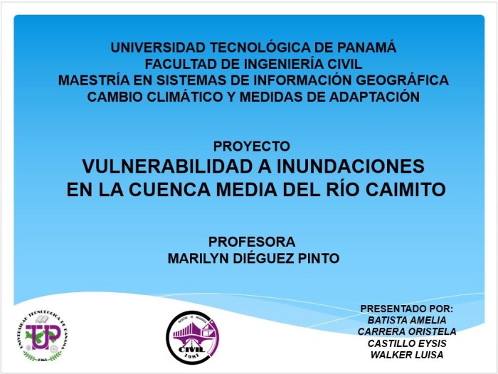 Curso avanzado de Cambio climático y medidas de adaptación. Maestría. Facultad de Ingeniería Civil. Universidad Tecnológica de Panamá.