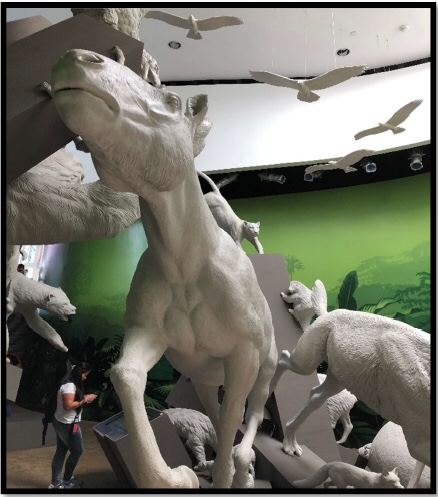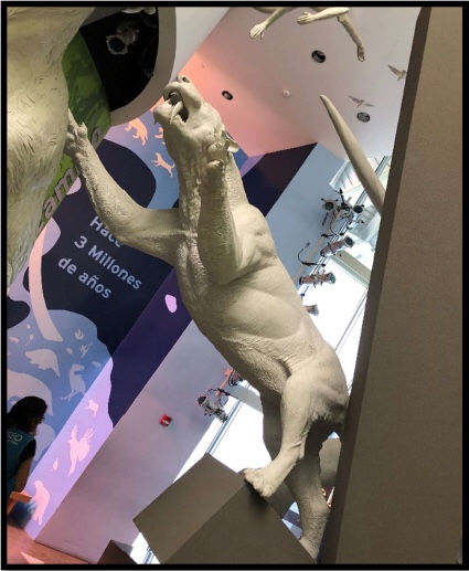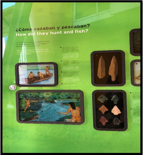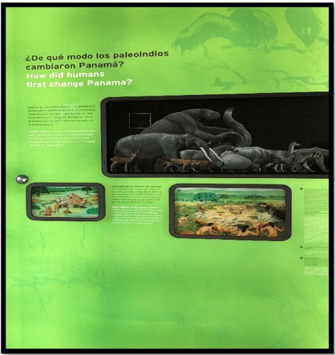 Después de la orden de salida en el paso me acerqué a la siguiente llamada LA HUELLA HUMANA, esta es una de las pocas exposiciones además de los jardines que puede visitarse de forma gratuita, ya que este se encuentra en la parte de abajo del museo y no tiene ninguna limitación a cualquier transeúnte, esta nos muestra un resumen de la historia en los inicios de los humanos en el istmo al igual que su interacción con la biodiversidad encontrada.
