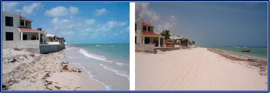 Figura 26. Antes y después de instalación de geotubos en Yucatán, México.