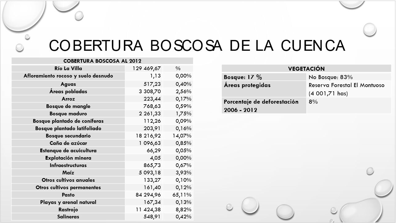 Como resultado de esta situación, existe la degradación de más de 2 millones de hectáreas de suelos en las provincias centrales equivalentes al 27 % de la superficie total del país; el arrastre de sedimentos hacia los ríos y los crecientes procesos de aterramiento y saturación de casi todas las quebradas y ríos de la vertiente del Pacífico, con los consiguientes perjuicios para los equipos de potabilización, hidroeléctricas, sistemas de riego y drenaje, con repercusiones sobre el ecosistema marino.