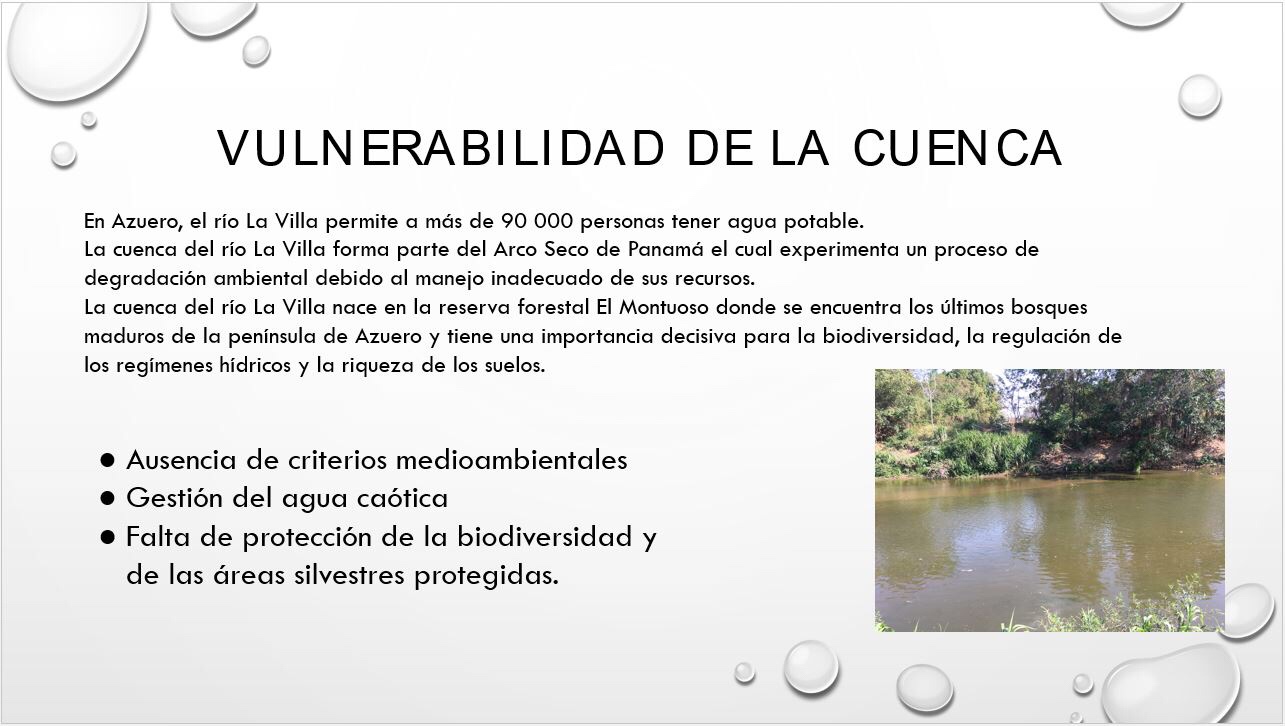 Los escenarios desarrollados sobre los impactos del cambio climático vinculados al incremento de la temperatura media mundial y específicamente a un ascenso del nivel del mar plantearon la necesidad de evaluar la vulnerabilidad de la costa del Pacífico de Panamá, ante la amenaza latente y el posible incremento de la vulnerabilidad de la población que en ella habita.
