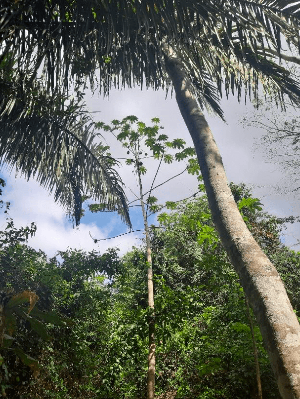 Durante la gira pudimos observar la diversidad de árboles y conocer de cómo determinar el estado de un bosque, en cuanto a su edad relativa. A través de la presencia de lianas o bejucos, y sus respectivos diámetros. Entre más jóvenes sean los bosques, mayor será su capacidad para absorber dióxido de carbono. Los bosques jóvenes presentan árboles de menores diámetros y alturas, y una mayor densidad de individuos por superficie.