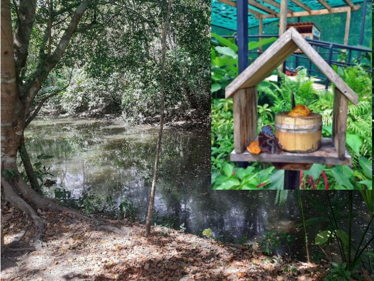 Durante el recorrido se pudo evidenciar una gran cantidad de enredaderas, lianas, palmas, árboles de mediano y otros de gran tamaño que sirven de hogar para aves, pequeños mamíferos e insectos. Además, de un mirador que permite tener una vista panorámica de la ciudad capital.