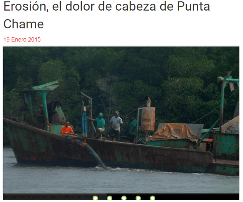 Chame es un área de acumulación de arena por naturaleza, y ese material está siendo sacado del lugar para ser usado para la construcción. Desde hace varios años se ha ido desgastando las zonas de la costa de Chame, y se ha creado casi como un istmo de erosión costera, donde se han perdido manglares.